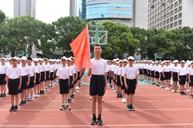 热血青春,同学们无惧骄阳,站在广阔的操场之上,用呐喊与汗水的力量昂首阔步,奋勇向前。