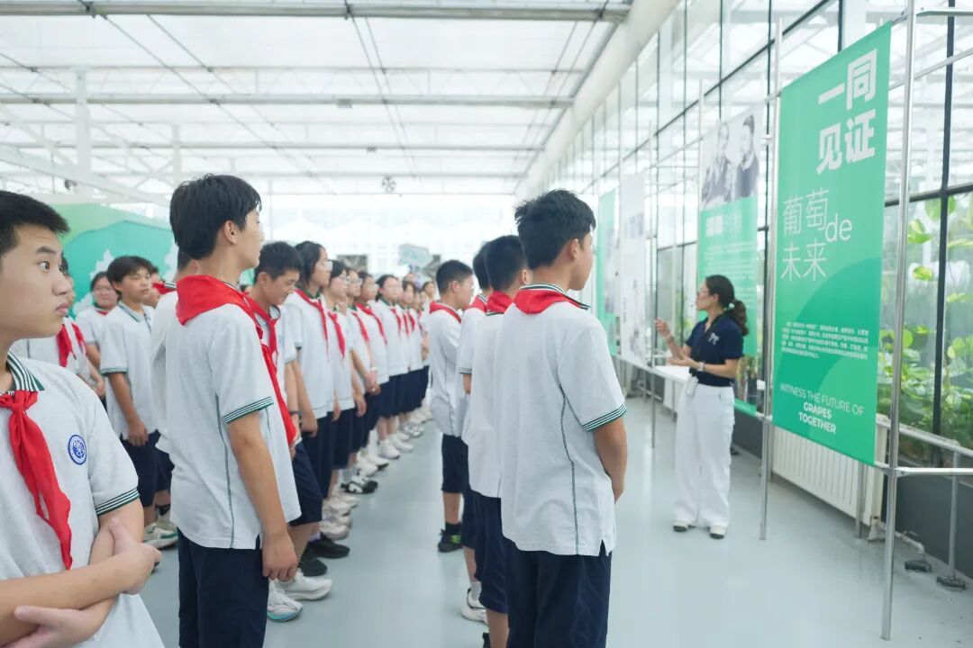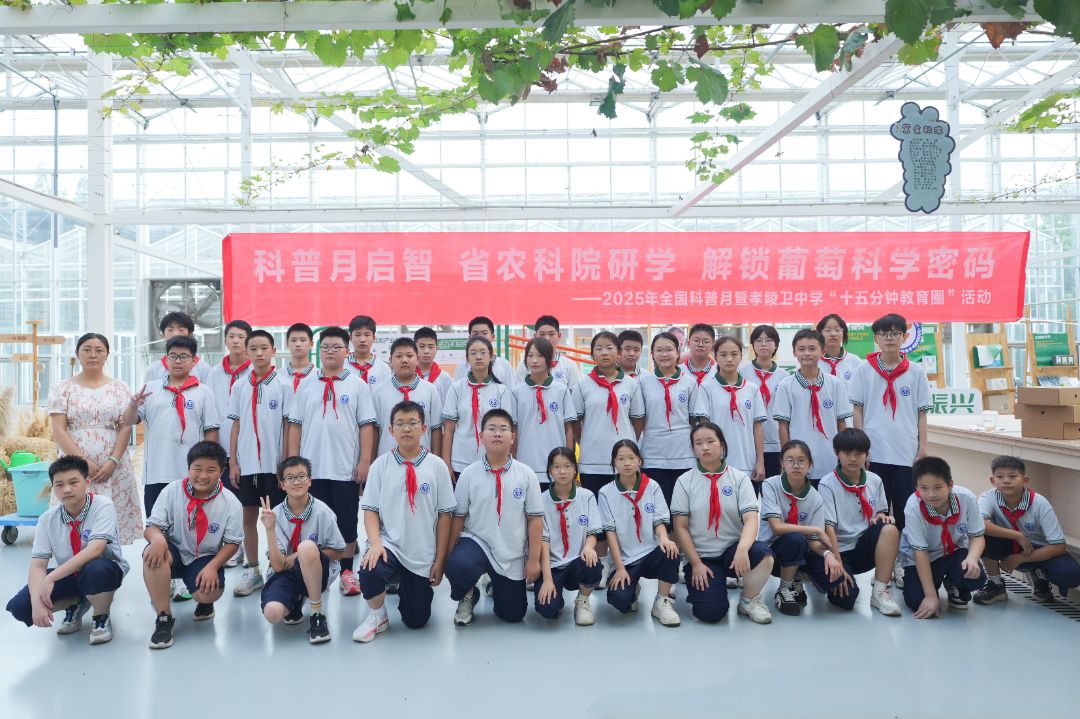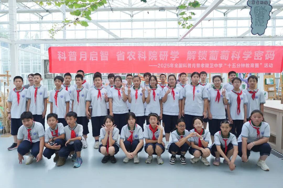 9月10日下午,秋阳正好,南京市孝陵卫初级中学初一年级师生走进江苏省农业科学院科研展示温室,开展“15分钟教育圈”主题实践活动,活动以 “‘葡’写精彩 ‘萄’醉科学”为主题,巧妙将生物课堂从教室延伸到科研基地,让学生在沉浸式体验中了解葡萄的“前世今生”,深入感受科学魅力,收获知识与成长。