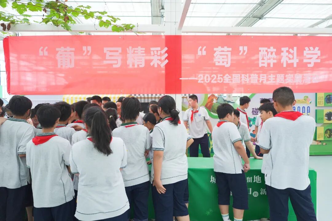 活动伊始,江苏省农科院专家闫莉春老师带领师生们走进科普馆葡萄展区,开启了一场 “葡萄知识之旅”。从葡萄的起源与传播历史,到不同品种葡萄的演化过程,再到我国葡萄产业的发展现状与创新成果…… 闫莉春老师结合展区内的实物标本、图文展板与模型,层层深入讲解,让抽象的知识变得直观易懂,不仅让同学们全方位了解了葡萄的 “前世今生”,也激发了大家对农业科学的浓厚兴趣。