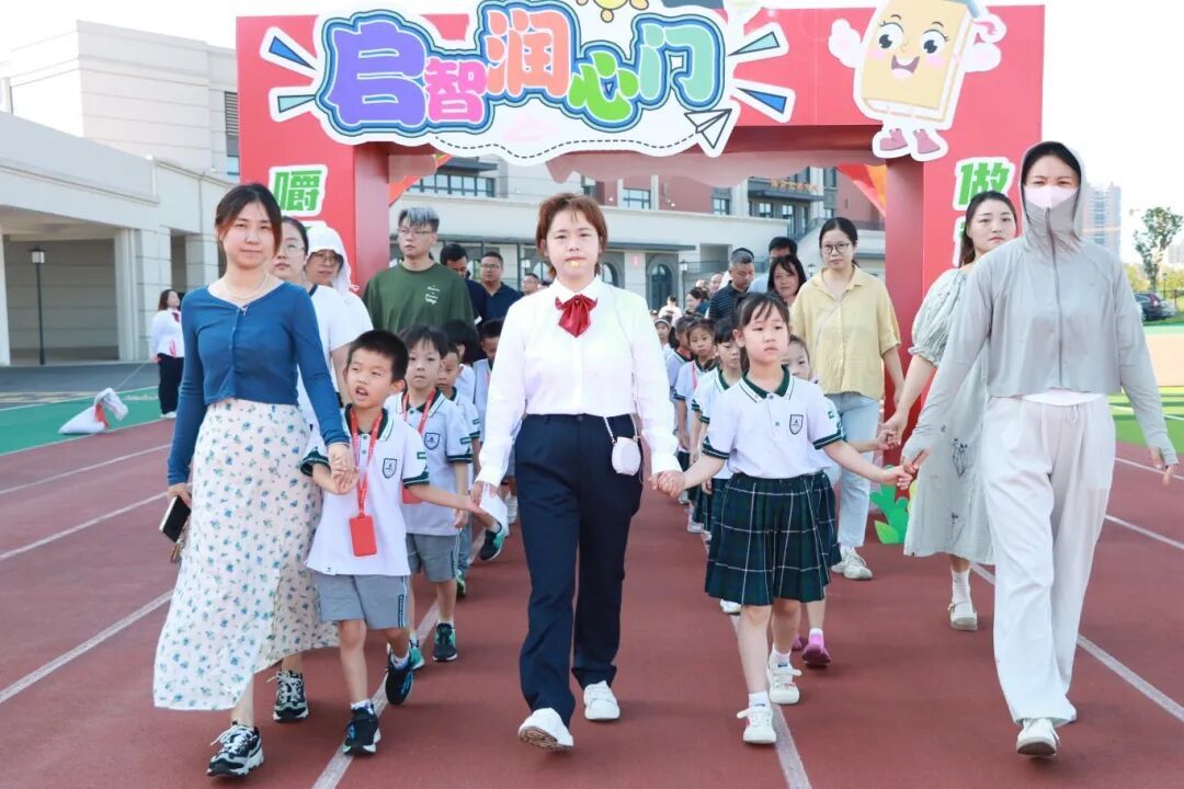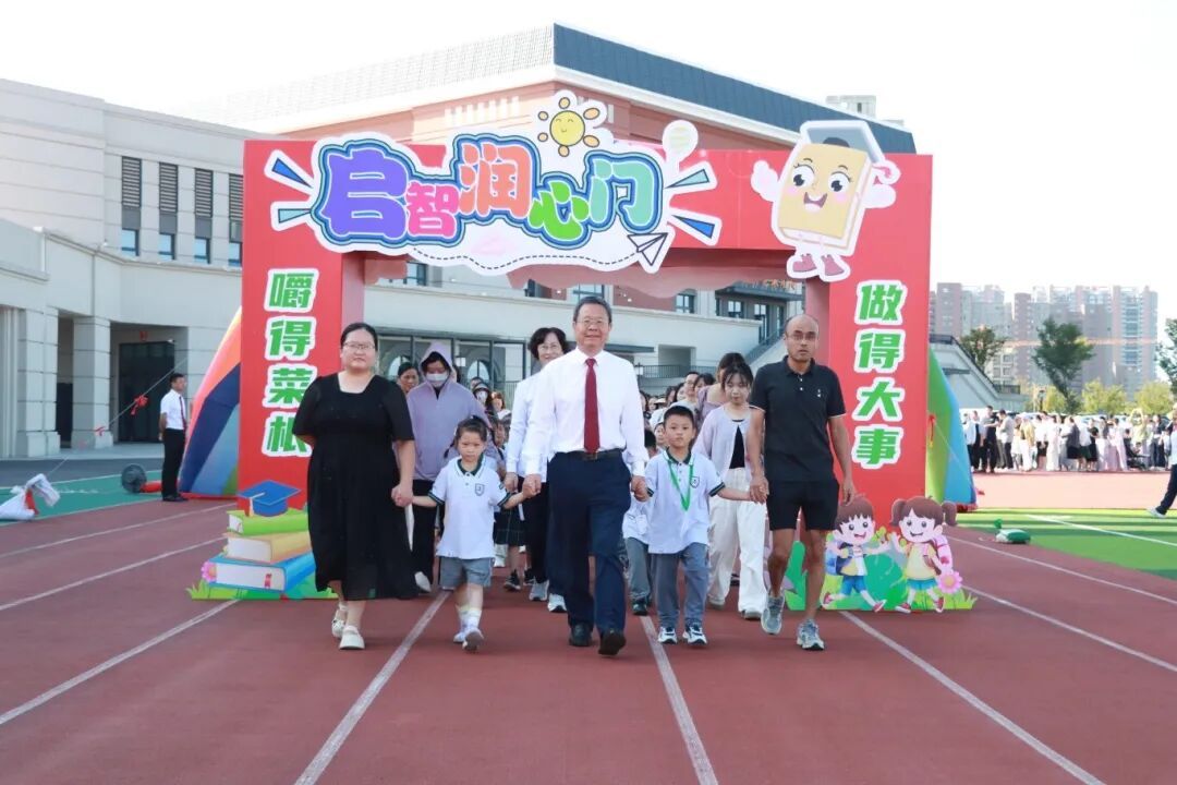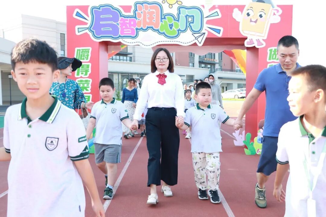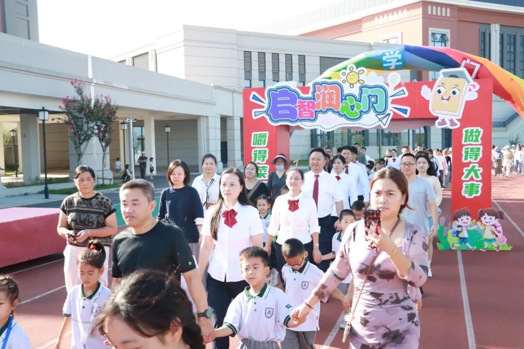 伴随着欢快的乐曲,一年级新生在老师和家长的陪伴下一起走过精心布置的彩虹门、入学门与启智润心门,每一步都在为小学篇章写下温馨序章。