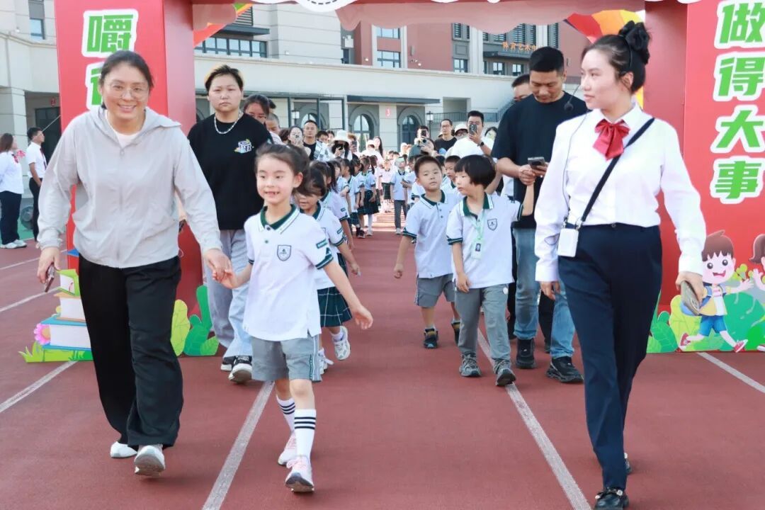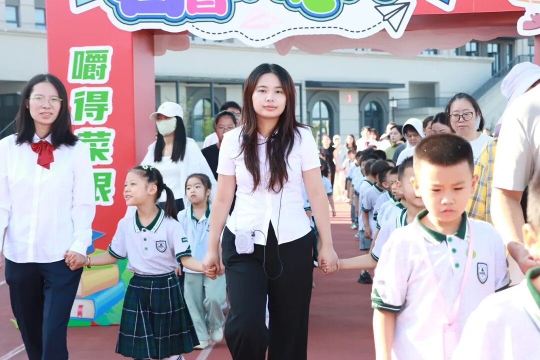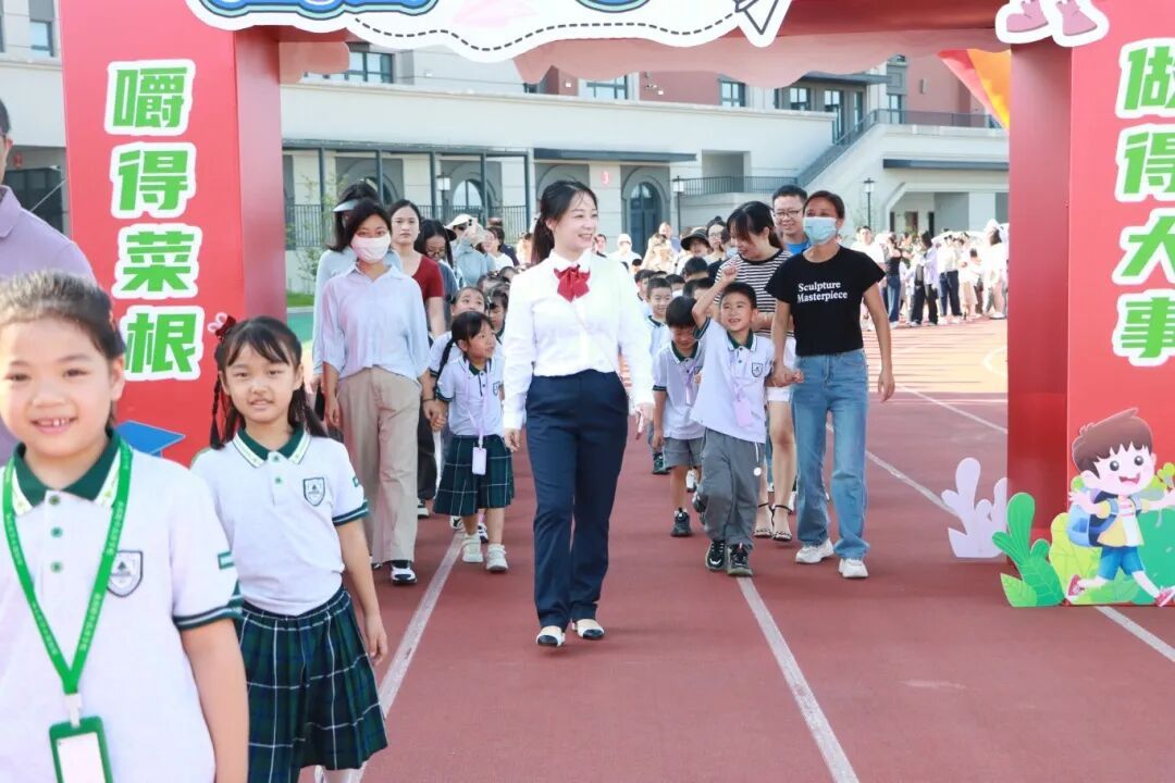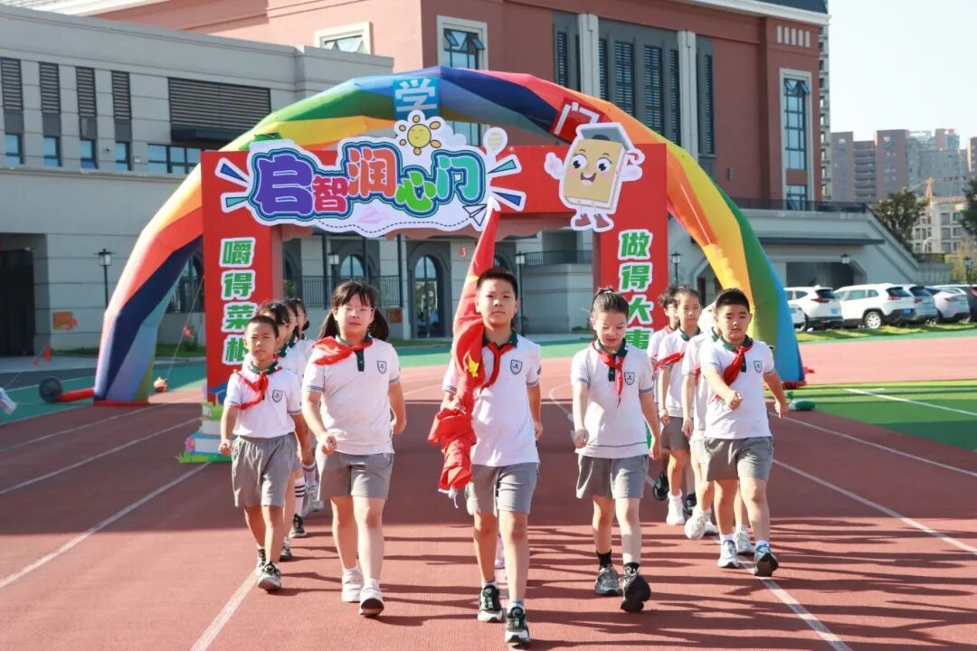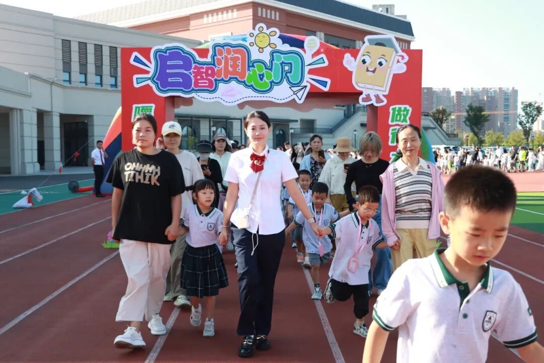 伴随着欢快的乐曲,一年级新生在老师和家长的陪伴下一起走过精心布置的彩虹门、入学门与启智润心门,每一步都在为小学篇章写下温馨序章。