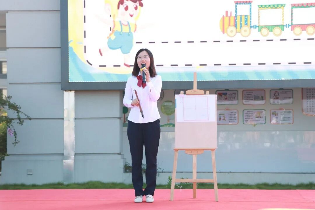 王慧副校长登台致辞,言语间既有对2025级新生加入校园大家庭的热烈欢迎,也饱含对孩子们“以礼立身、以智求知”的殷切叮嘱,希望所有一年级新生怀揣梦想、勇敢向上,成为一名优秀的附中学子。