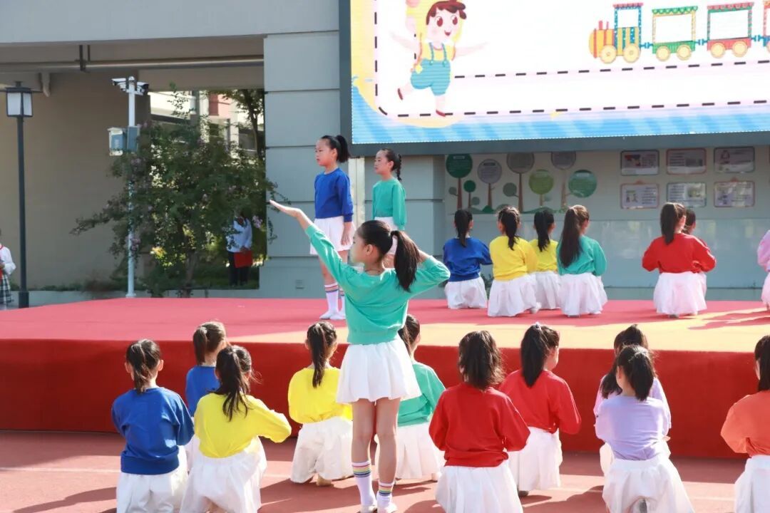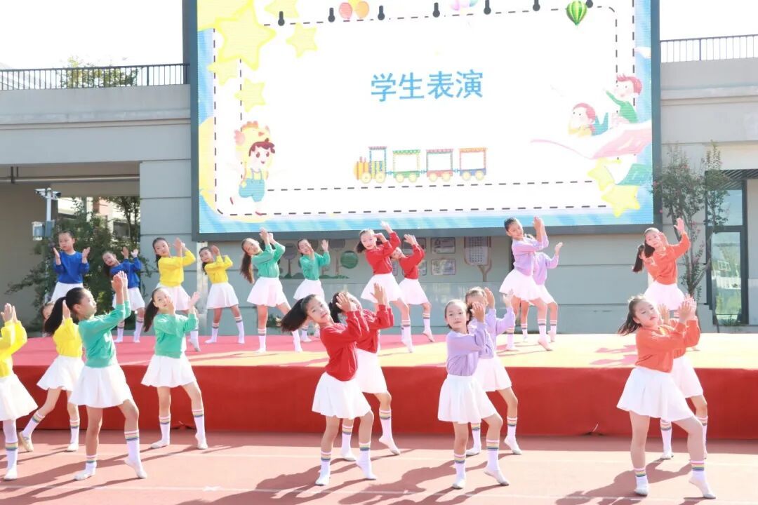 高年级的姐姐们带来了精彩舞蹈,祝贺一年级的弟弟妹妹们正式成为小学生。