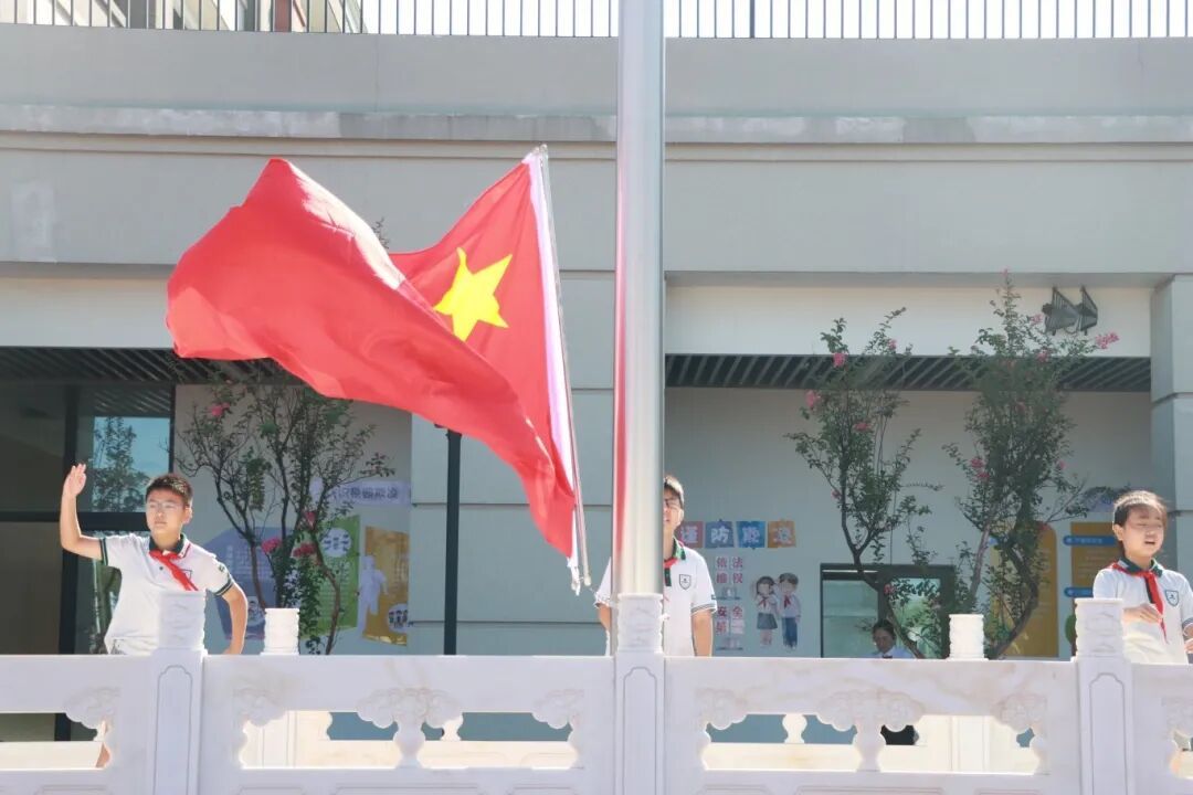 随后的升旗仪式,护旗手们个个昂首挺胸,同学们有序肃立。在庄严的国歌声中,五星红旗缓缓升起,小小孩童心中更增添了爱国之情。