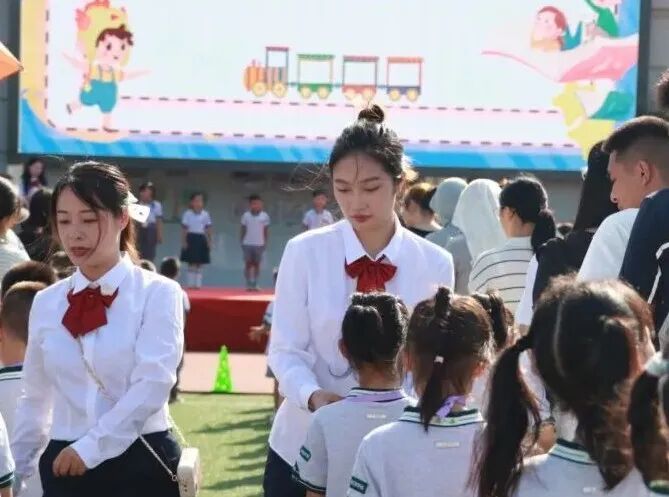 夏春燕老师带领学生书写“人”字,一笔一画,不仅是教新生写字,更是传递“立人”之道,以笔为钥,开启新生们的智慧与人生新章。