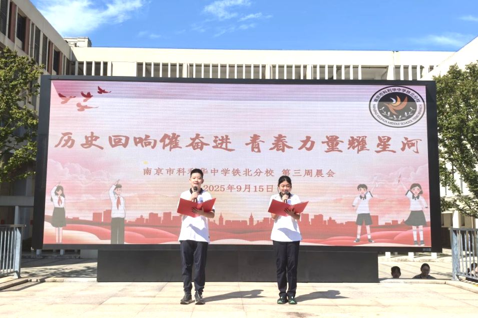 2025年9月15日上午,南京市科利华中学铁北分校全体师生齐聚操场,隆重举行第三周晨会暨“历史回响催奋进,青春力量耀星河”九一八事变纪念活动。本次活动旨在引导青少年学生铭记历史、缅怀先烈,传承红色基因,激发爱国热情。