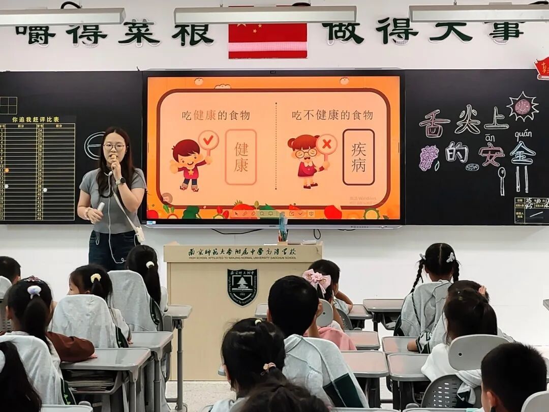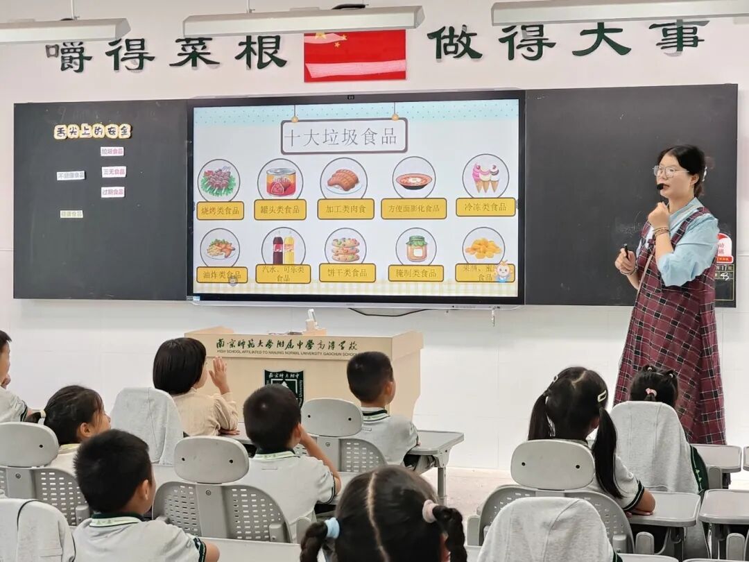 夏卓妍老师执教《舌尖上的安全》,以高淳美食切入,通过探案、游戏和情景剧场,让学生学会辨别并拒绝不安全食品。