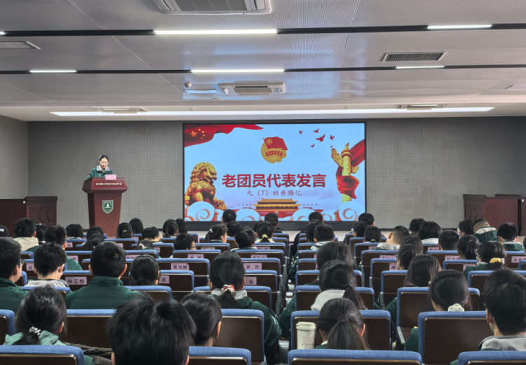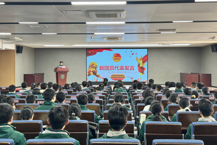 新团员赵依可同学代表发言:“让我们牢记习近平总书记的嘱托,立志做有理想、敢担当、能吃苦、肯奋斗的新时代好青年,让青春在全面建设社会主义现代化国家的火热实践中绽放绚丽之花。”